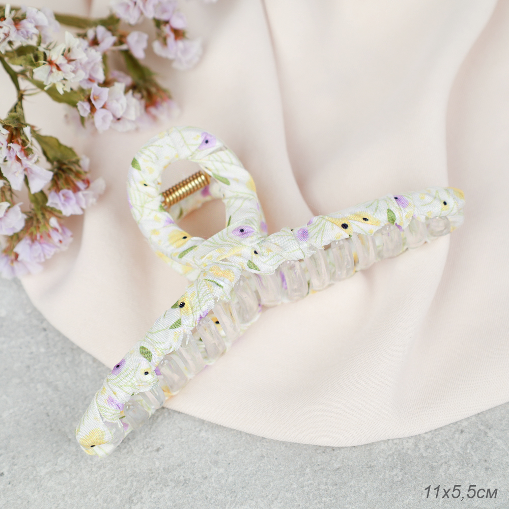 Краб для волос 11 см / XXF-25 /уп 40/белый с цветами