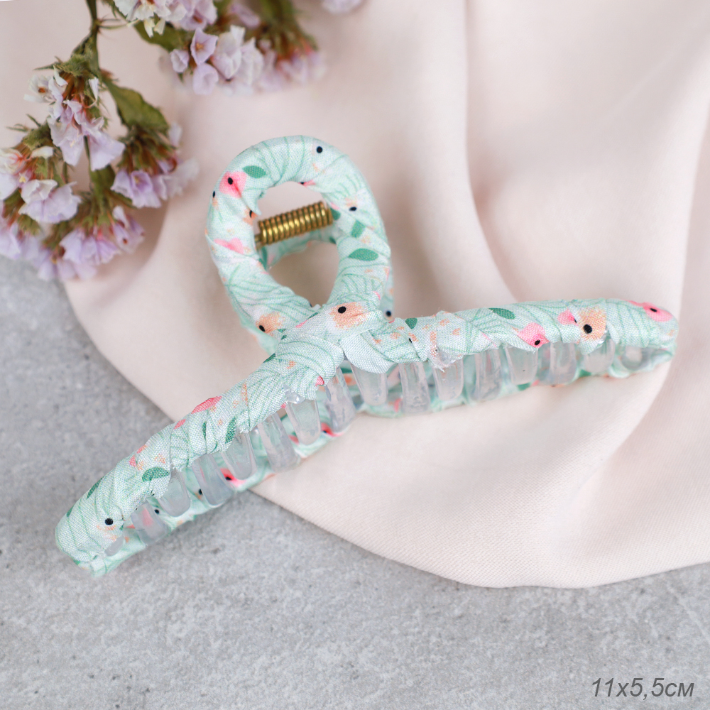 Краб для волос 11 см / XXF-27 /уп 20/салатовый с цветами