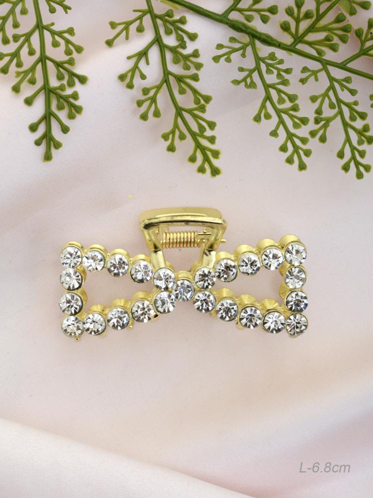 Краб для волос 6,8 см Бант / GTJ-8 /уп 12/золото/стразы