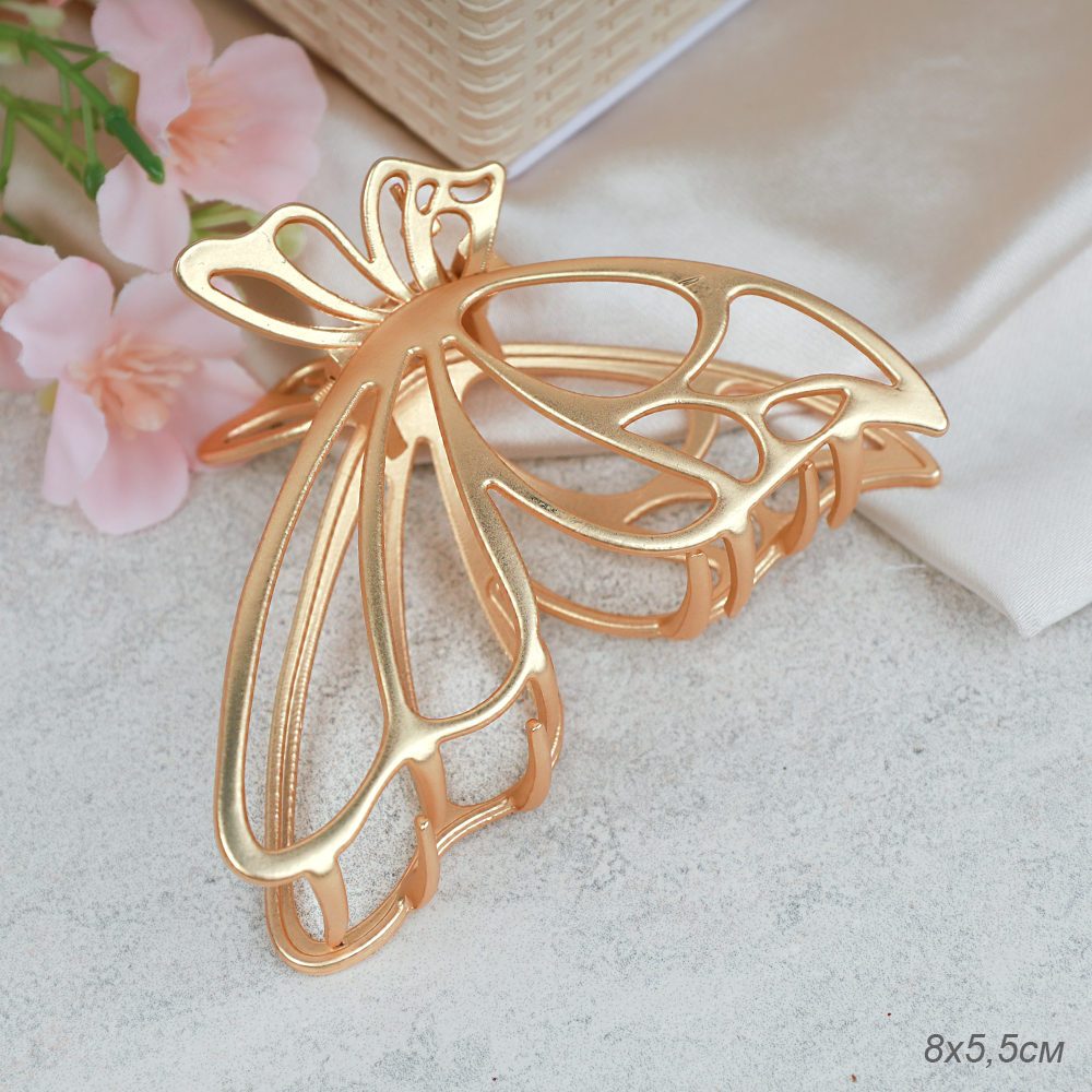 Краб для волос 8 см Бабочка / FEI-7 /уп 12/металл/золото
