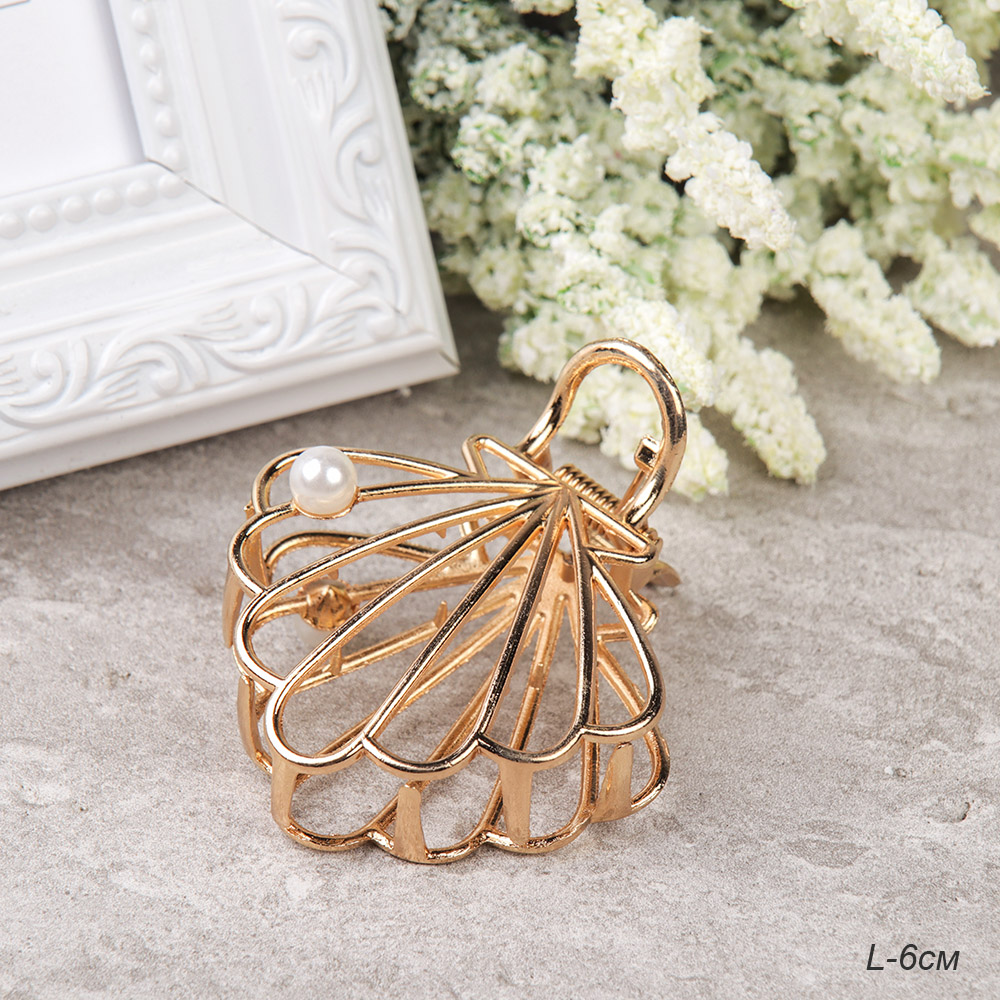 Крабик для волос 6 см Ракушка / NK-6 /уп 12/металл/золото