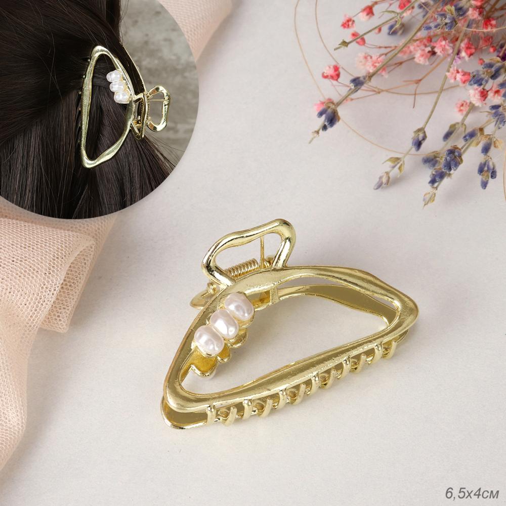 Заколка-краб для волос 6,5 см / XY2415-16 /уп 40/металл/золото/жемчуг