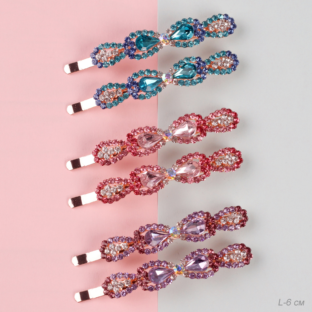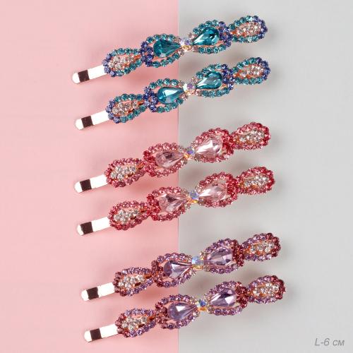 Невидимка для волос 6 см 2 штуки набор / GTN-5 /уп 12/серебро/стразы