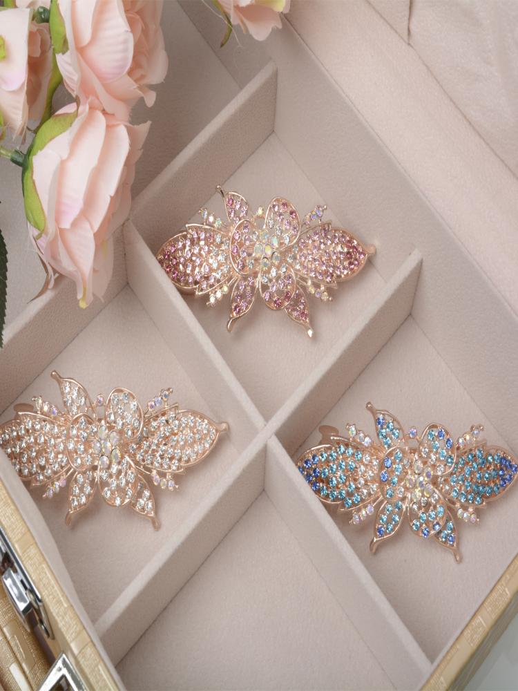 Заколка-автомат Цветок / GTU-1 /уп 12/золото/стразы