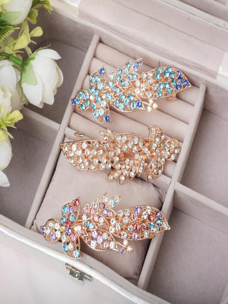 Заколка-автомат Цветок / GTU-13 /уп 12/золото/стразы
