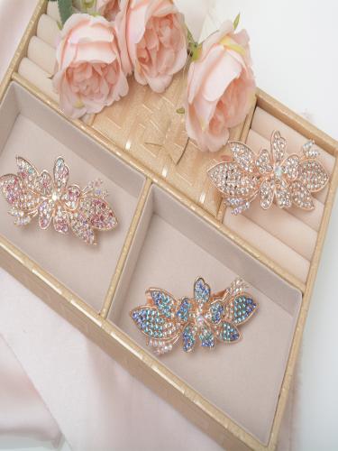 Заколка-автомат Цветок / GTU-2 /уп 12/золото/стразы