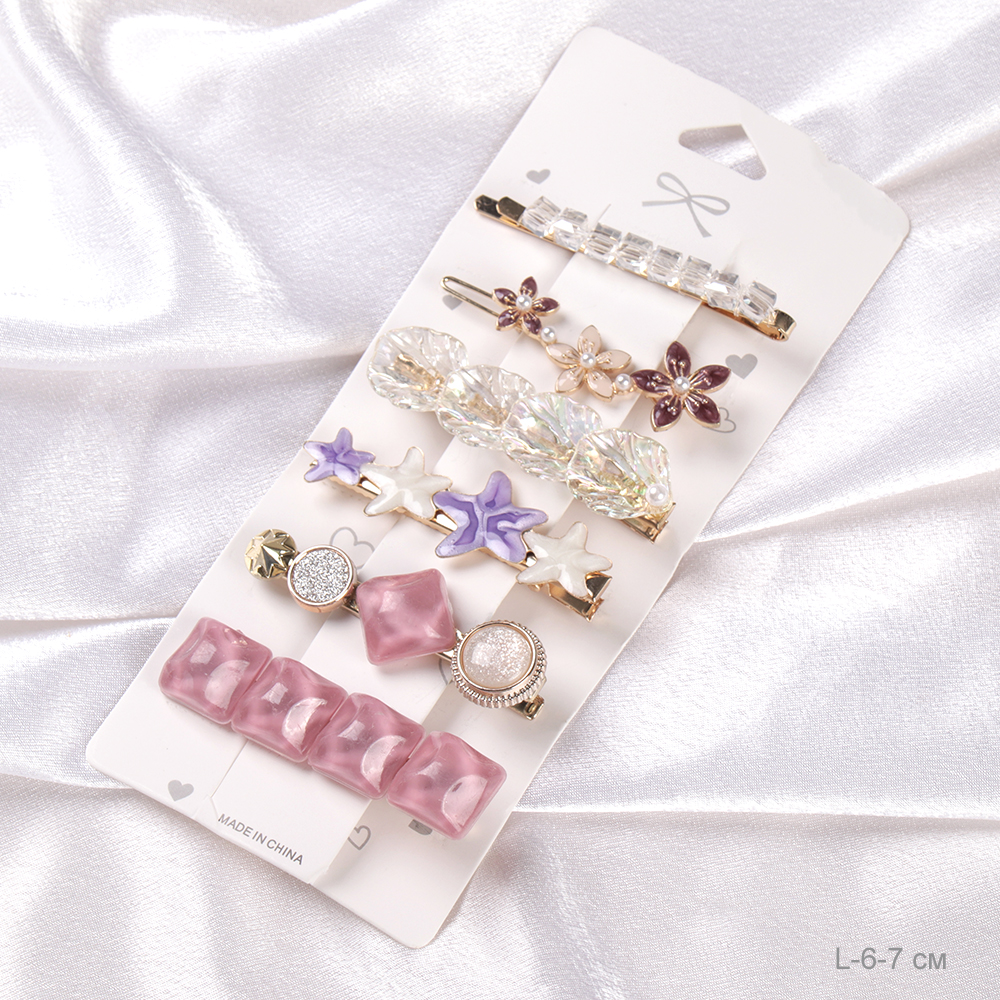 Заколка-зажим 6-7 см набор 6 штук / 2125-73 /уп 12/жемчуг/стразы