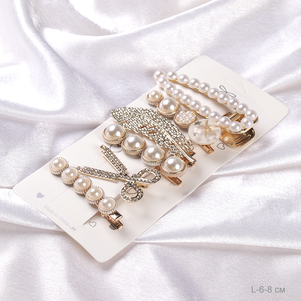 Заколка-зажим 6-8 см набор 6 штук / 2125-72 /уп 12/жемчуг/стразы
