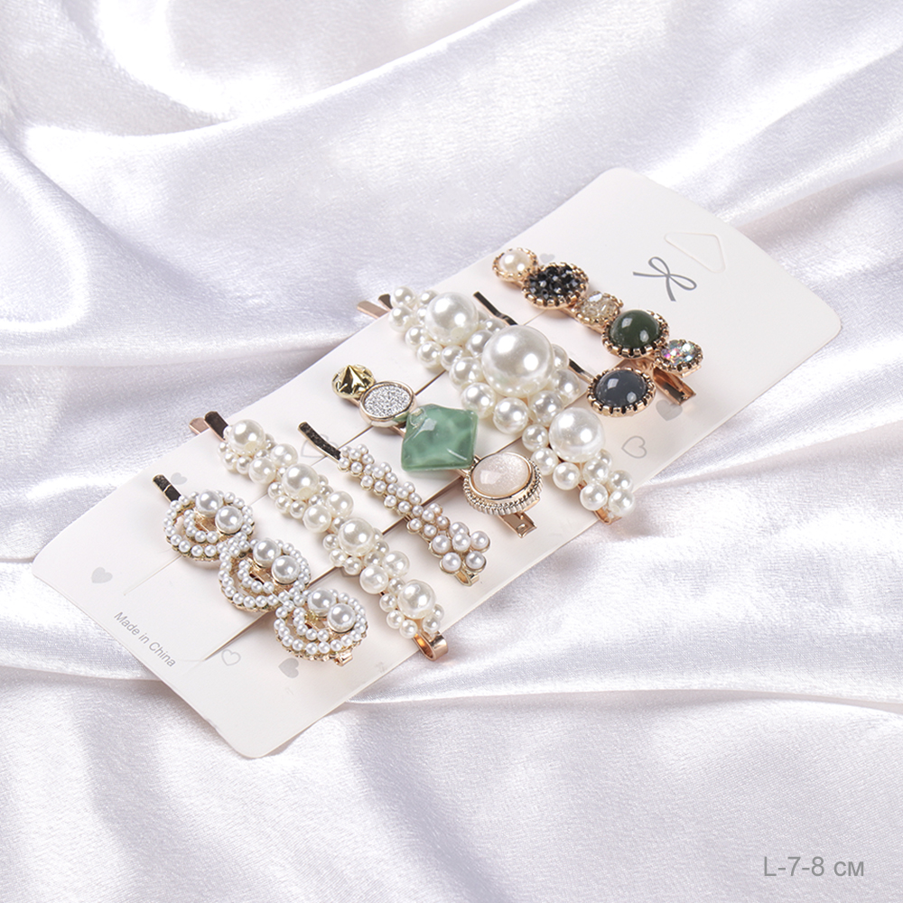 Заколка-зажим 7-8 см набор 7 штук / 2125-74 /уп 12/жемчуг/стразы