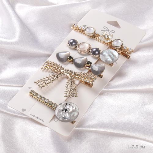 Заколка-зажим 7-9 см набор 5 штук / 2125-70 /уп 12/жемчуг/стразы