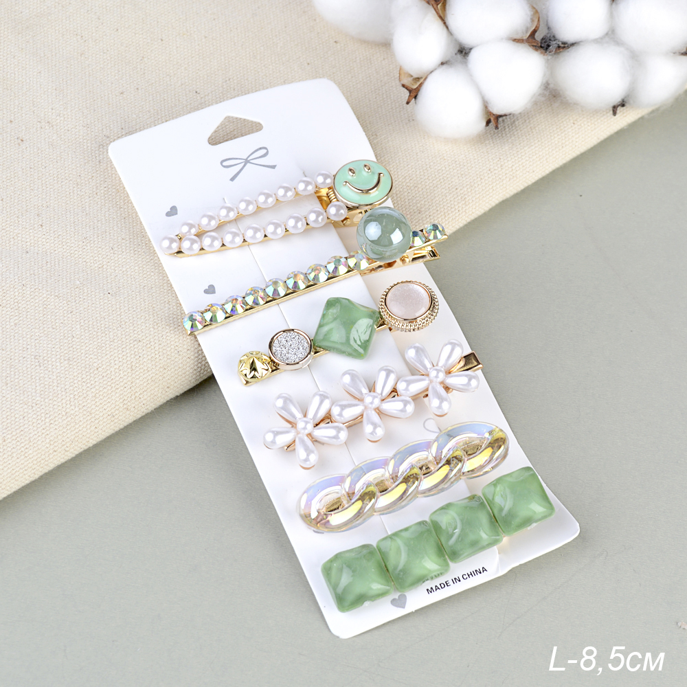 Заколка-зажим 8,5 см набор 6 штук / 2125-53 /жемчуг/стразы