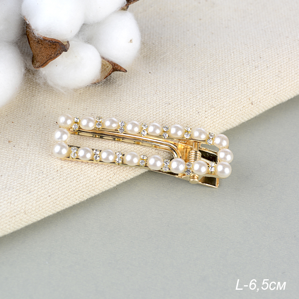 Заколка-зажим для волос 6,5 см / 2125-36 /уп 12/жемчуг/стразы
