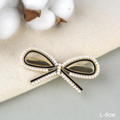 Заколка-зажим для волос 6 см Бант / 2125-9 /уп 12/жемчуг
