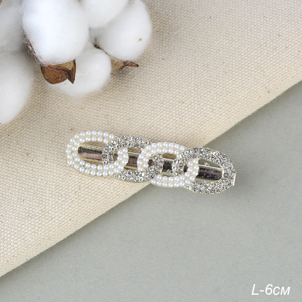 Заколка-зажим для волос 6 см Круги / 2125-29 /уп 12/жемчуг/стразы
