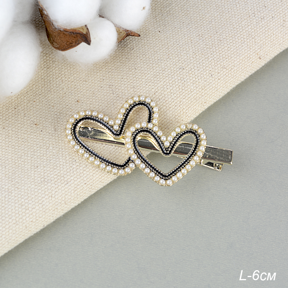 Заколка-зажим для волос 6 см Сердца / 2125-11 /уп 12/жемчуг