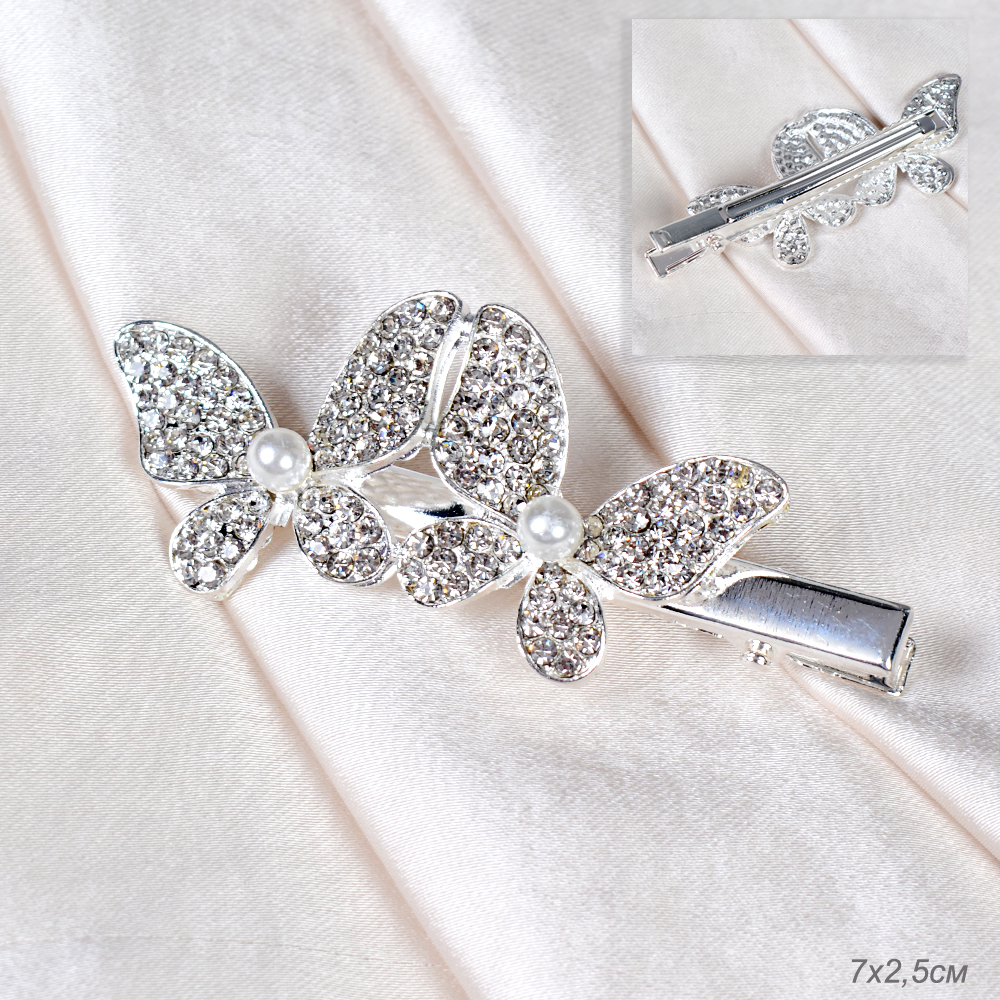 Заколка-зажим для волос 7 см Бабочки / NK-17 /уп 12/серебро