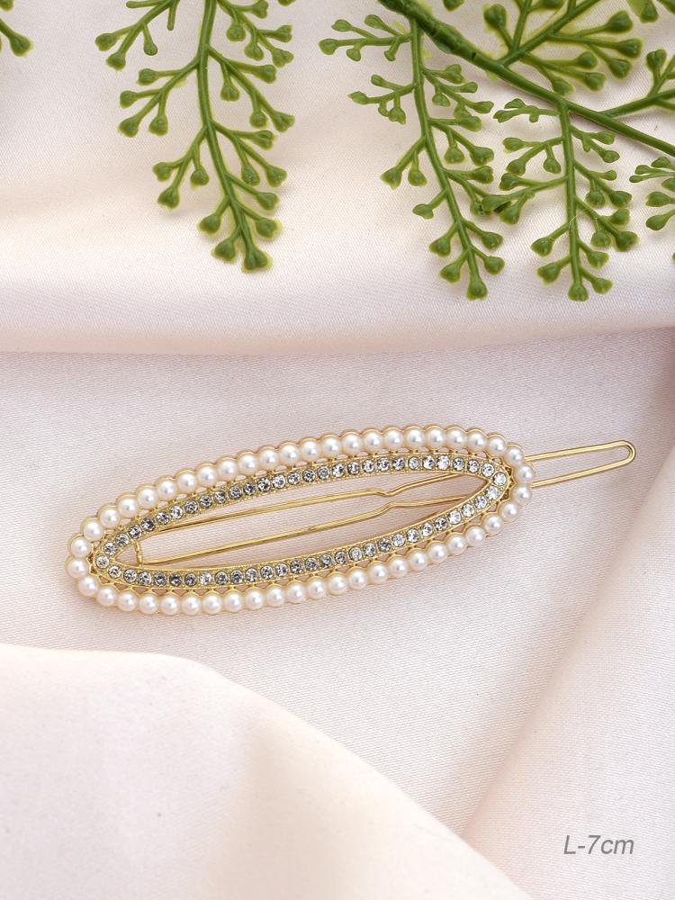Заколка-зажим для волос 7 см / GTK-27 /уп 12/стразы/жемчуг