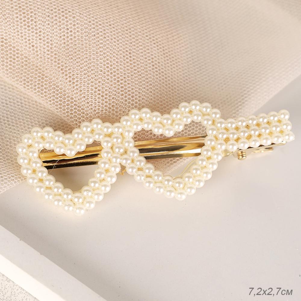 Заколка-зажим для волос Сердца / NL-33 /жемчуг
