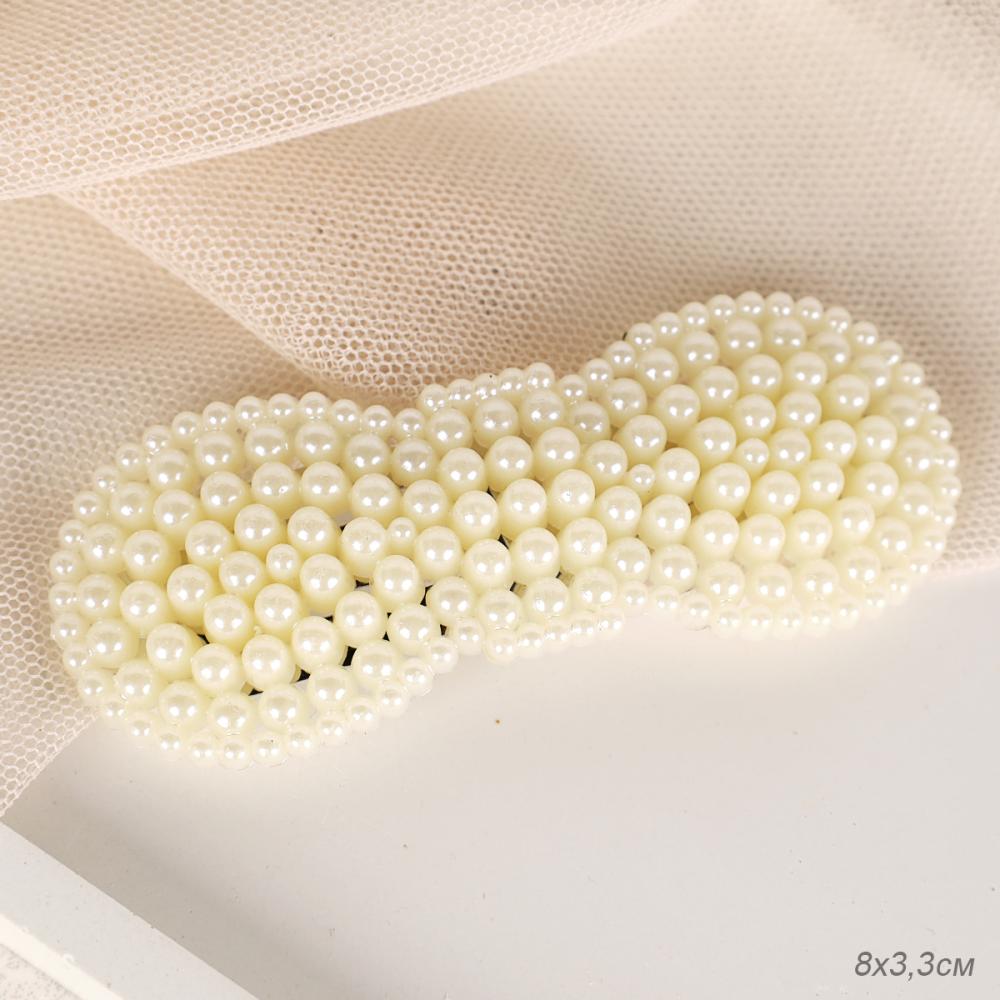 Заколка-зажим для волос Тик-Так Бант / NL-24 /жемчуг
