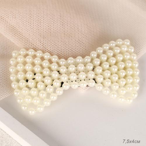 Заколка-зажим для волос Тик-Так Бант / NL-31 /жемчуг