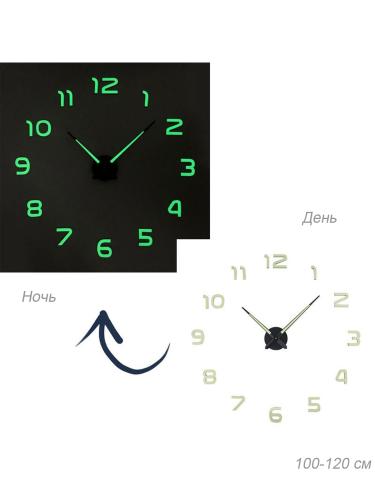 Часы настенные 3D наклейка 100-120 см / AL002N/1 /уп 36/светятся в темноте