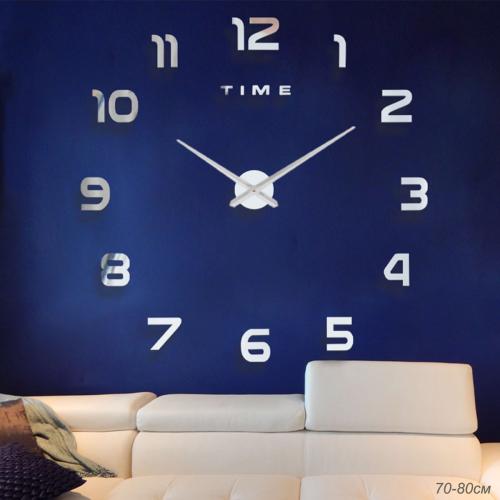 Часы настенные 3D наклейка 70-80 см / ZH00210S/2 /уп 60/ серебро