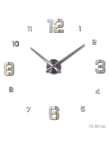 Часы настенные 3D наклейка 70-90 см / AL005S/2 /уп 50/ серебро