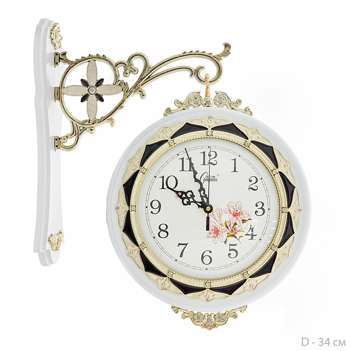 Часы настенные двухсторонние Вокзальные 34 см + ЗАПЧАСТЬ / 8001-2 /уп 6/ белые