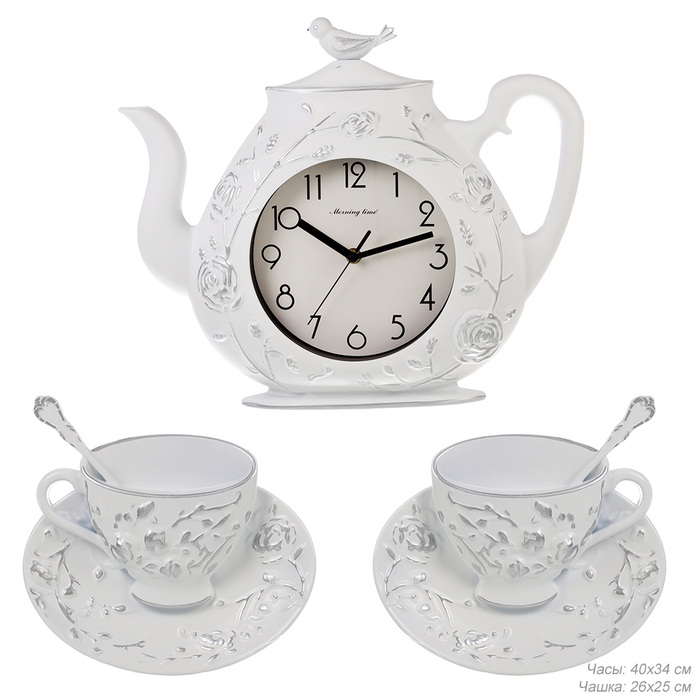 Часы настенные Чайник с чайной парой / 787B /уп 8/белый