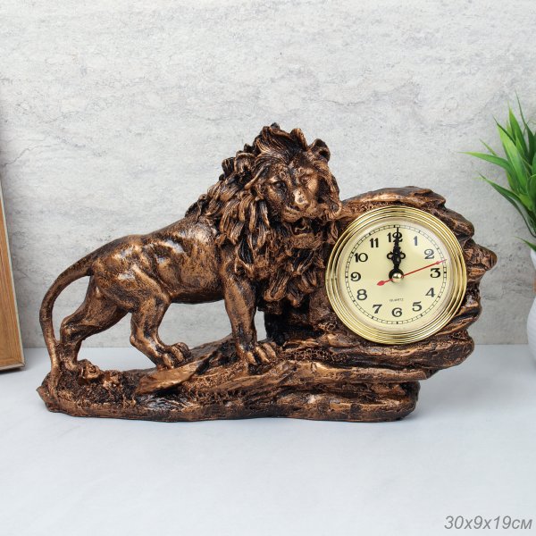 Часы статуэтка Лев 19x30 см / 8061A /уп 24/