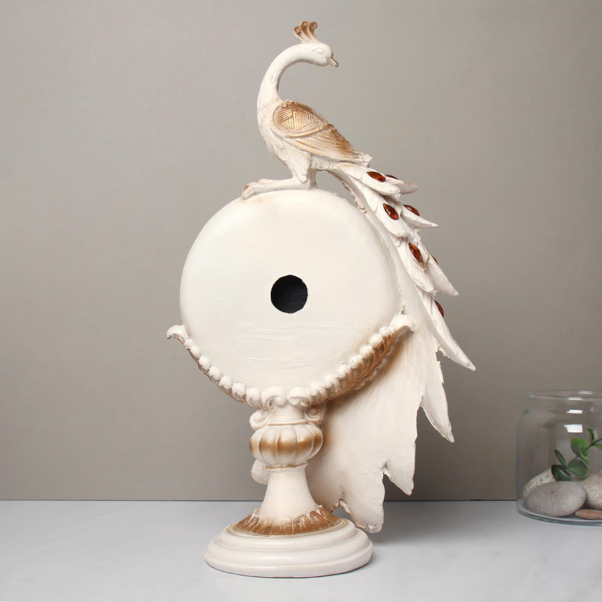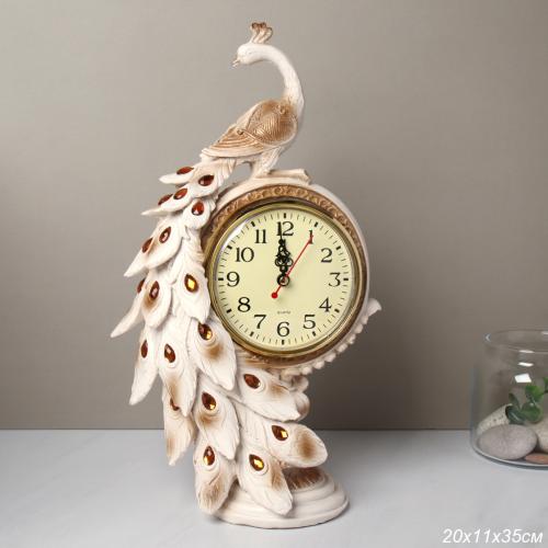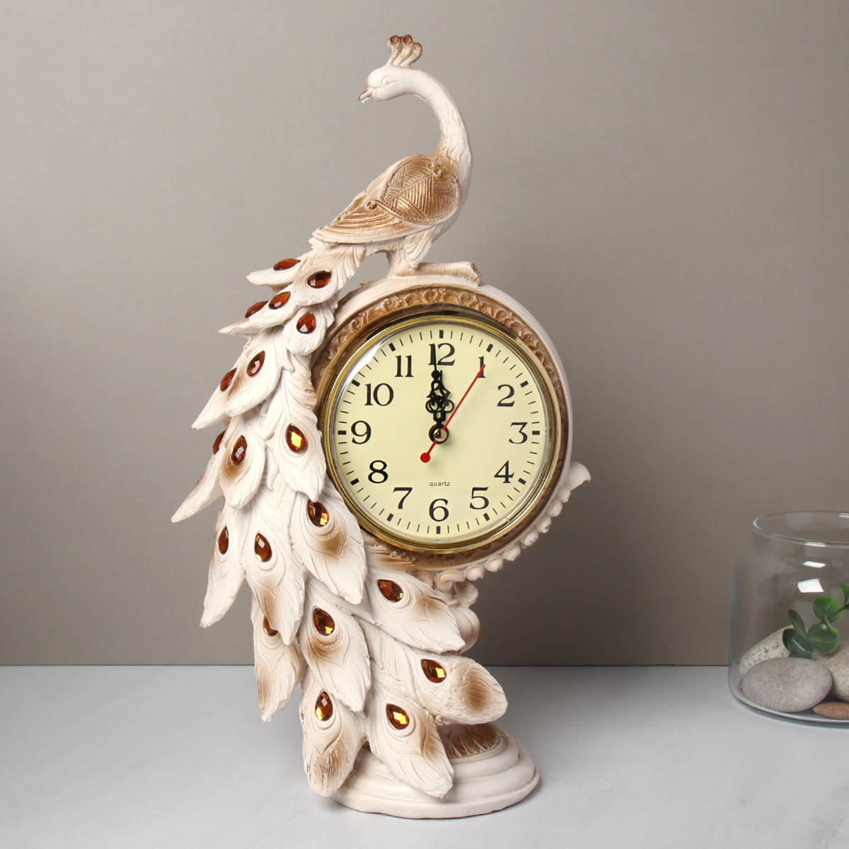 Часы статуэтка Павлин 35 см / 9024A /уп 16/белый