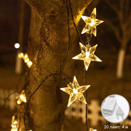 Гирлянда 4 м 20 LED Звездочки / GT622 /уп 200/