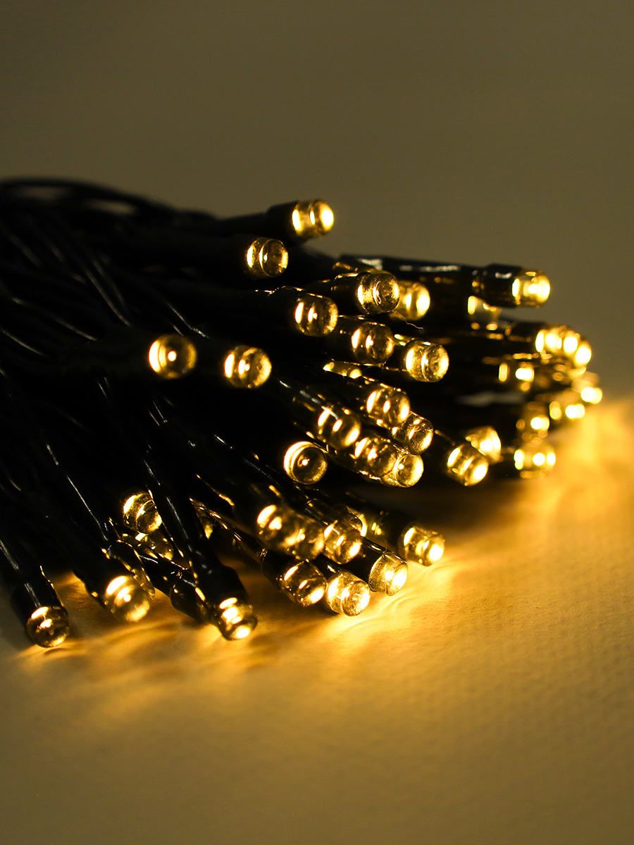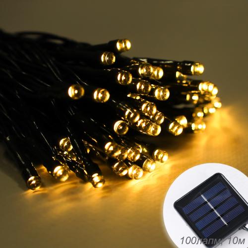 Гирлянда с питанием от солнечных элементов 10 м 100 лампочек 6 режимов / DPM-5560 /уп 100/ теплый белый свет