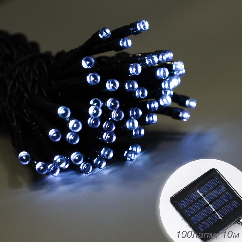 Гирлянда с питанием от солнечных элементов 10 м 100 лампочек 6 режимов / DPM-5801 /уп 100/ белый свет