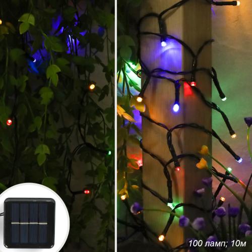 Гирлянда с питанием от солнечных элементов 10 м 100 лампочек 6 режимов / PM-5560/1 /уп 100/разноцветный
