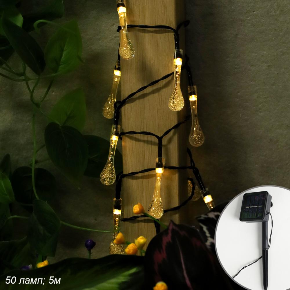 Гирлянда с питанием от солнечных элементов Капелька росы / FN-835 /уп 50/ 5 метров 50 ламп 6 режимов 690357