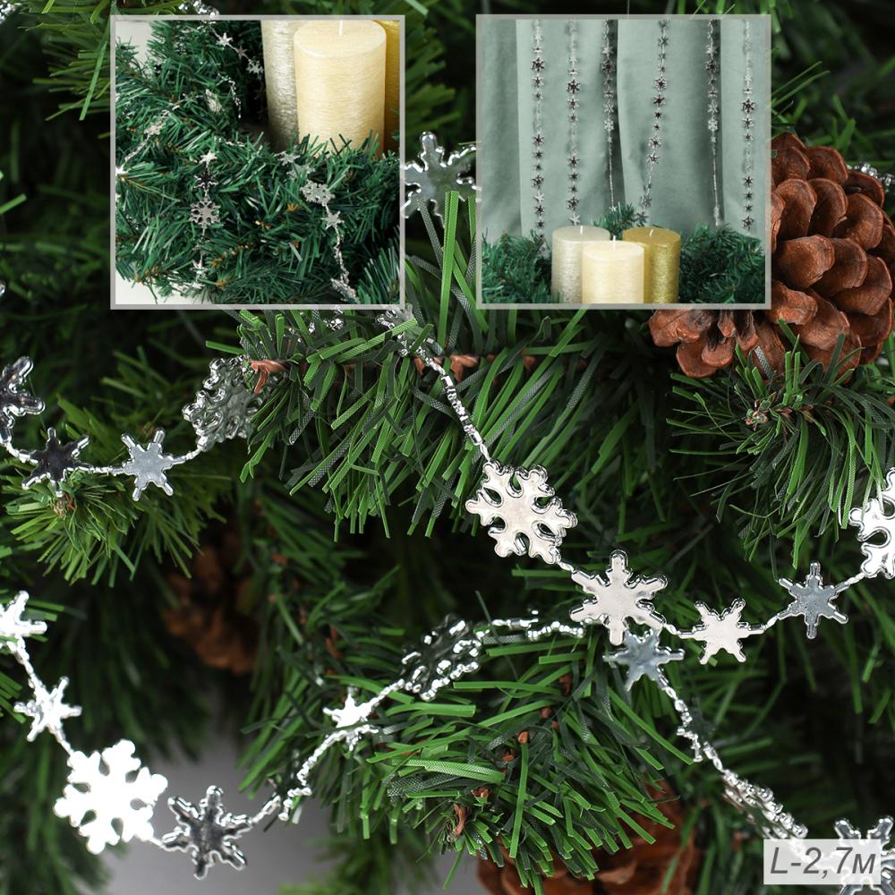Новогодние бусы на елку Снежинки 2,7 м / DW-1369 /уп 12/360/