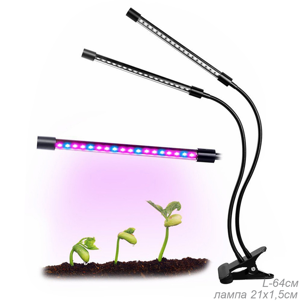 Светильник настольный / Фитолампа для растений с 2 лампами (проводной переключатель) / FITLED2 /уп 18/USB