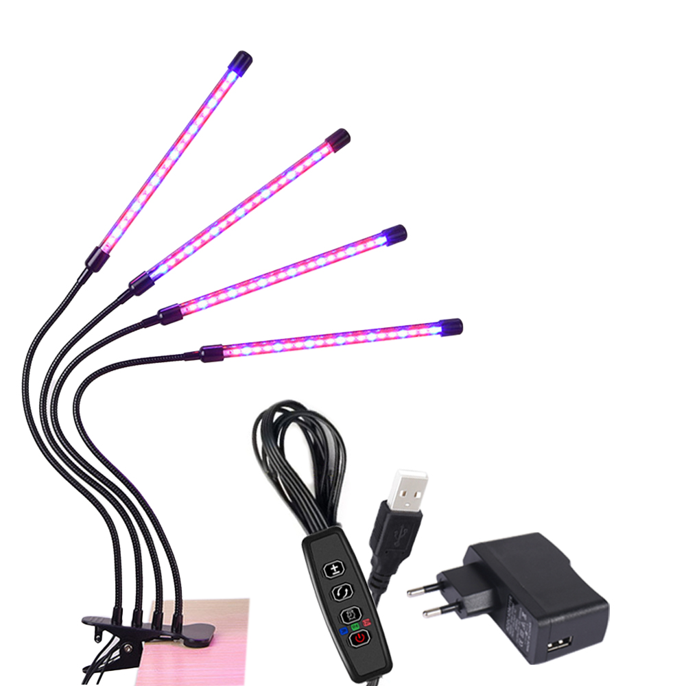 Светильник настольный / Фитолампа для растений с 4 лампами (проводной переключатель) + адаптер для розетки. / FITLED4-2 / уп 18