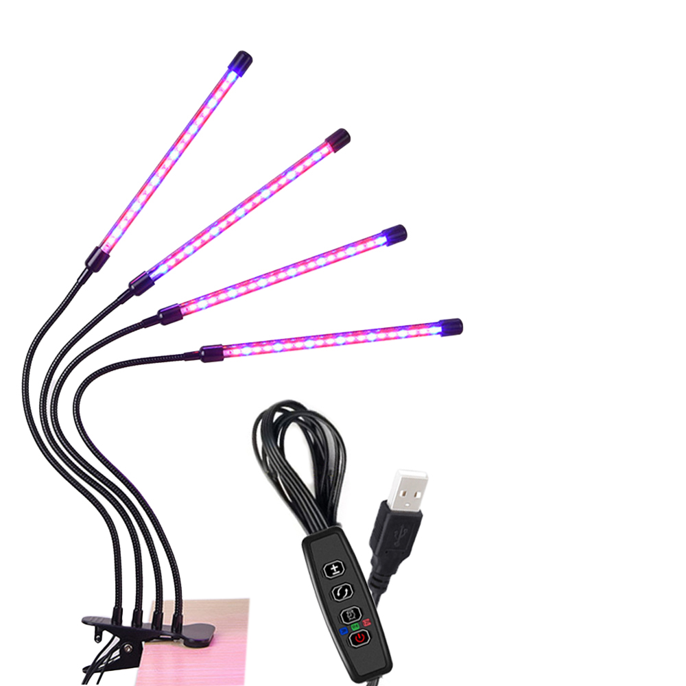 Светильник настольный / Фитолампа для растений с 4 лампами (проводной переключатель) / FITLED4 /уп 18/USB