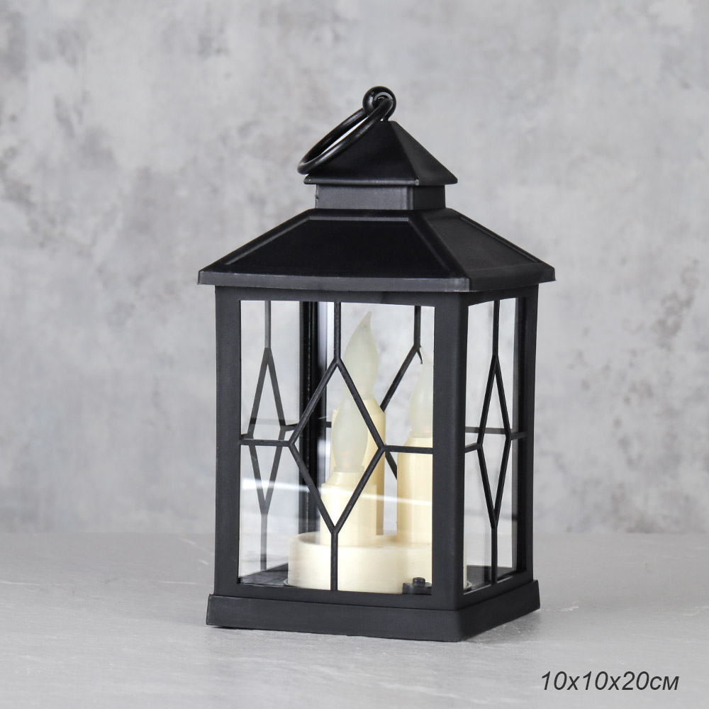 Светильник фонарь настольный 20 см черный три свечи / W672-19 /уп 48/от батареек