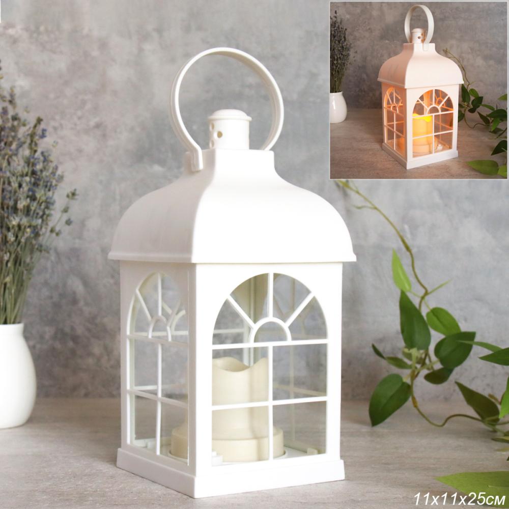 Светильник фонарь настольный Новогодний 21 см белый / YR02515W /уп 48/от батареек