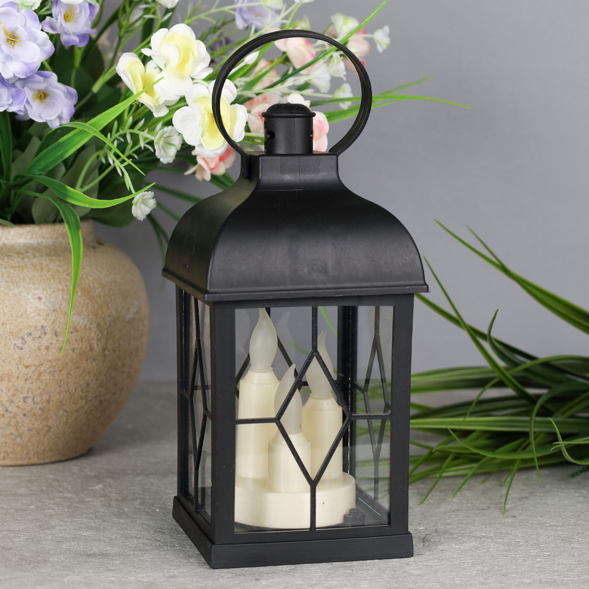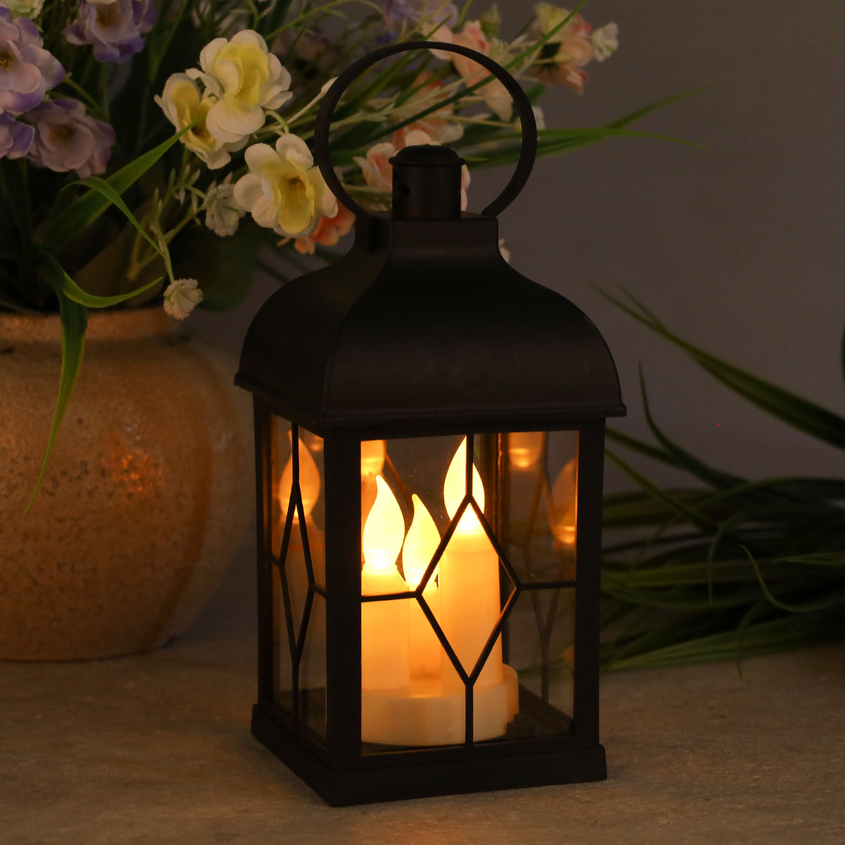 Светильник фонарь настольный Новогодний 21 см черный три свечи / YR01594B /уп 48/от батареек