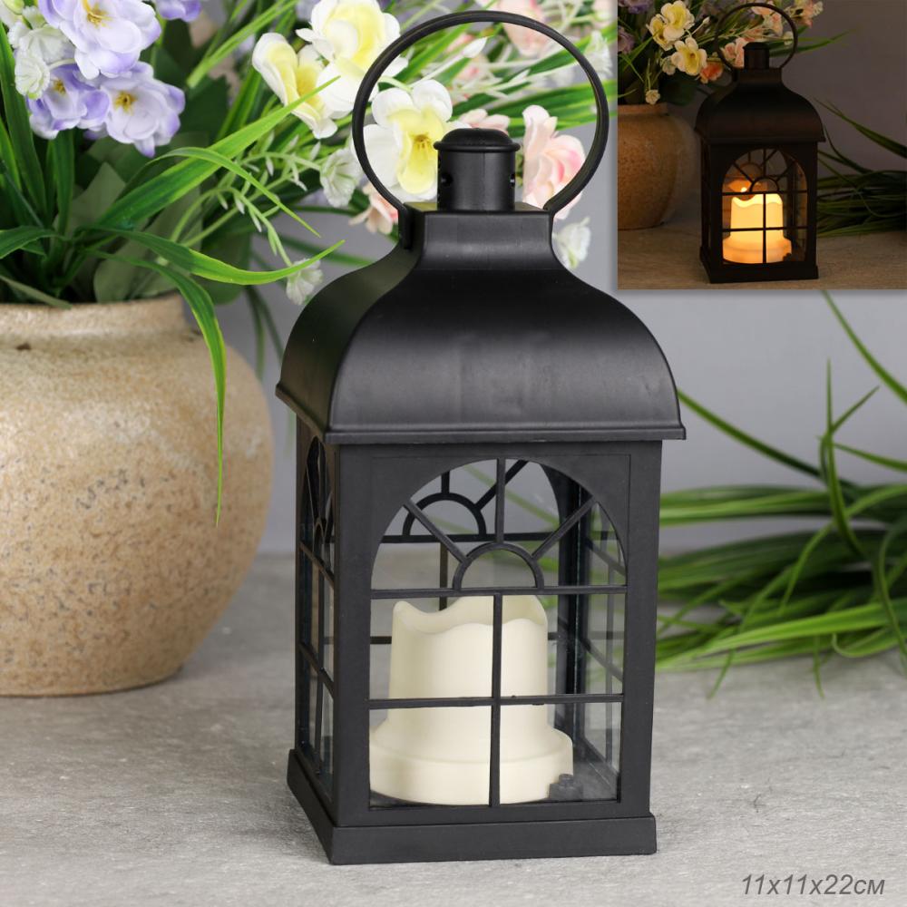 Светильник фонарь настольный 21 см черный / YR01515B /уп 48/от батареек