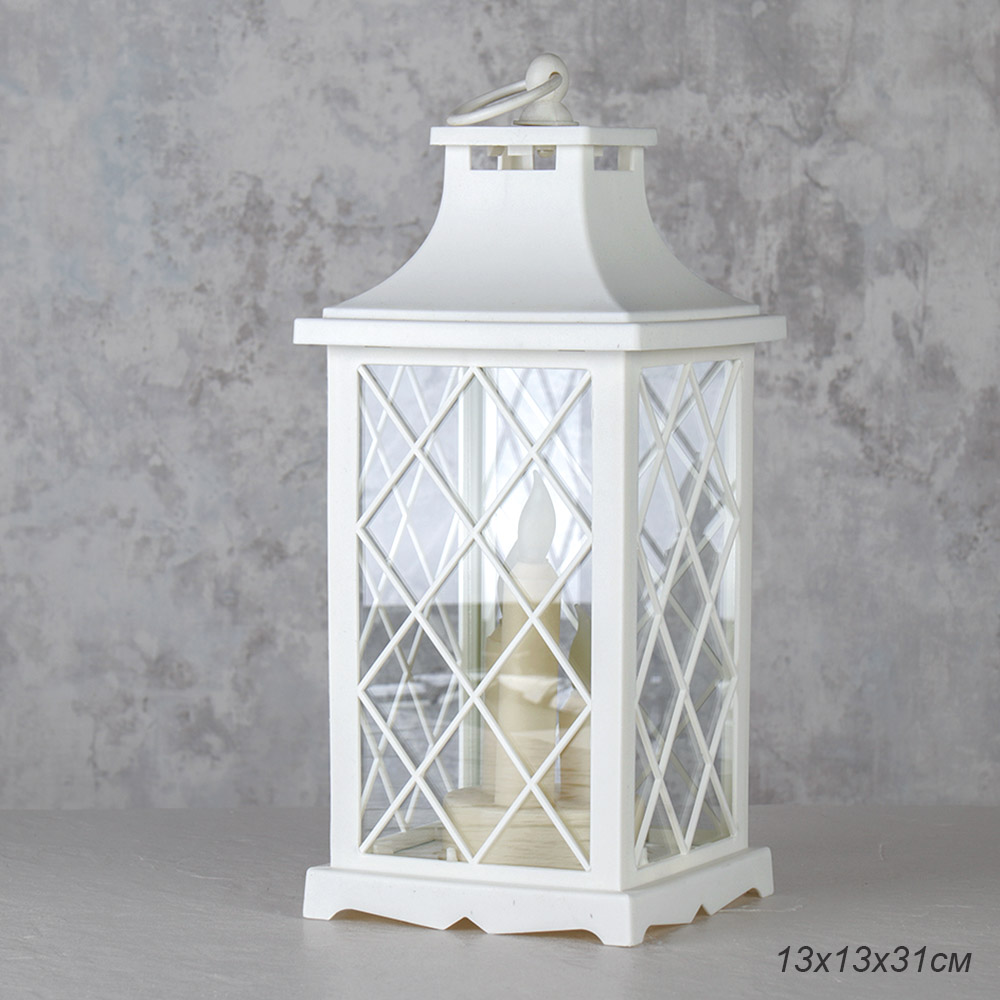 Светильник фонарь настольный Новогодний 31 см белый три свечи / W672-14-1 /уп 24/от батареек