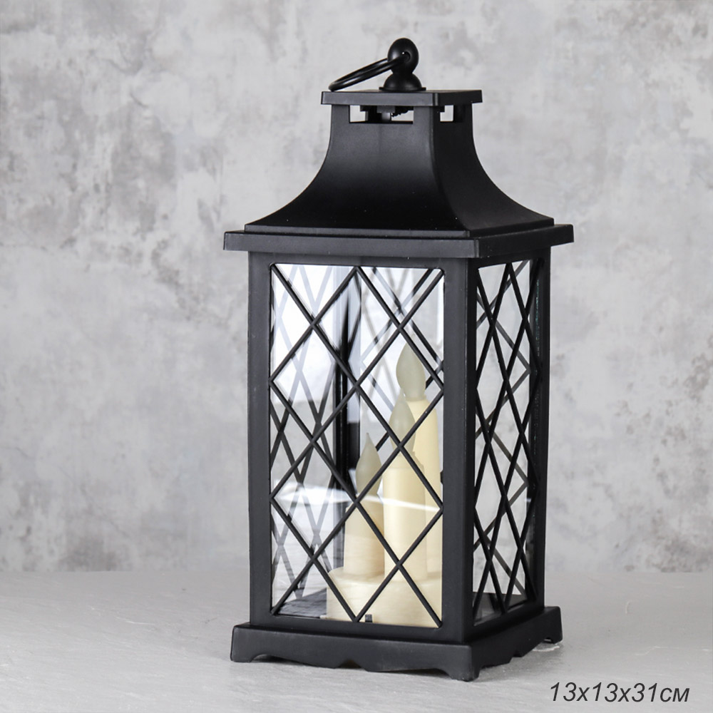 Светильник фонарь настольный 31 см черный три свечи / W672-14-2 /уп 24/от батареек