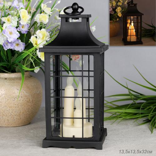 Светильник фонарь настольный 33 см три свечи / YR1369B /уп 24/от батареек