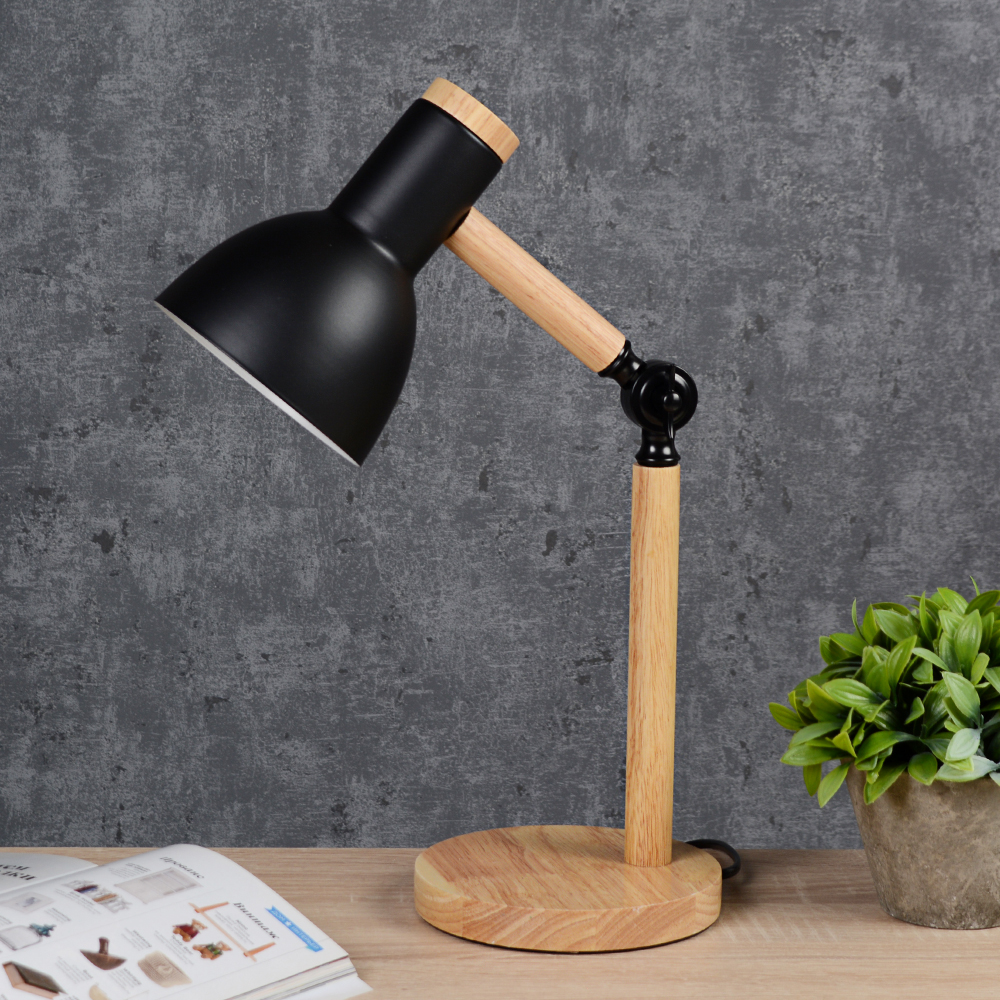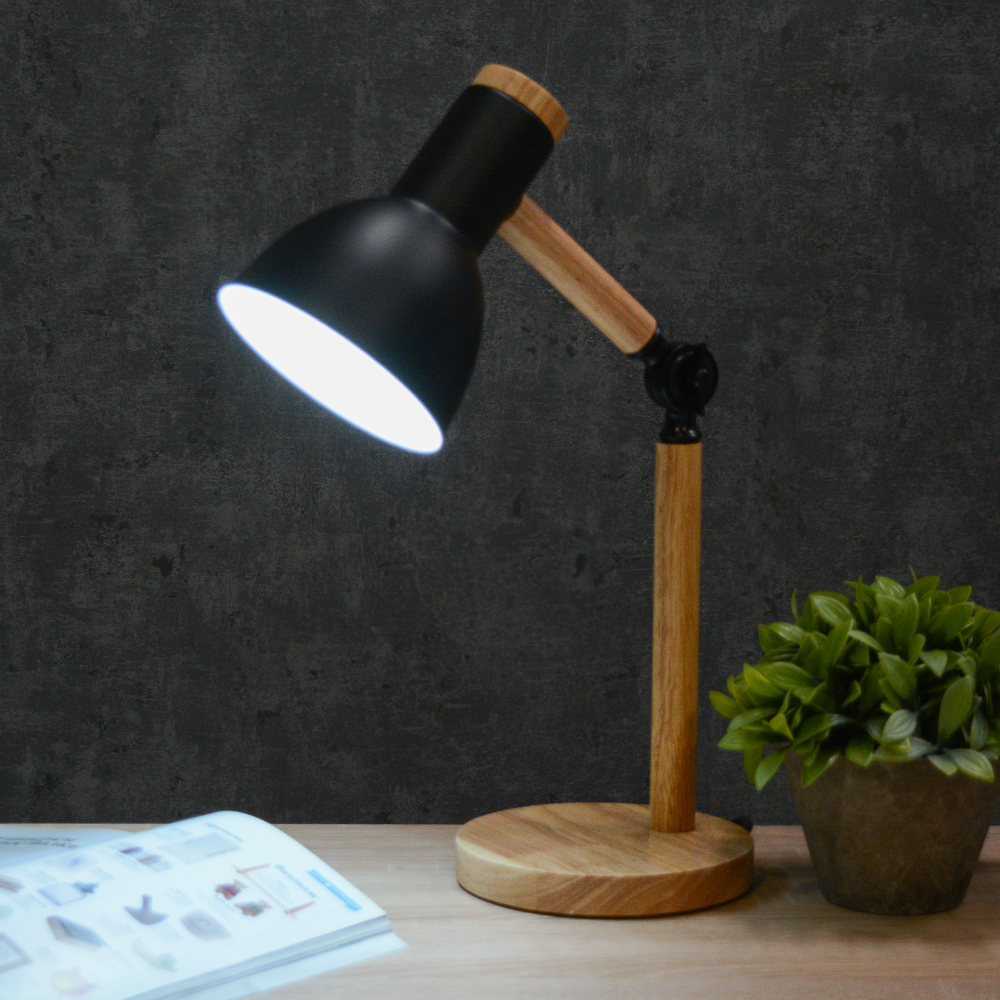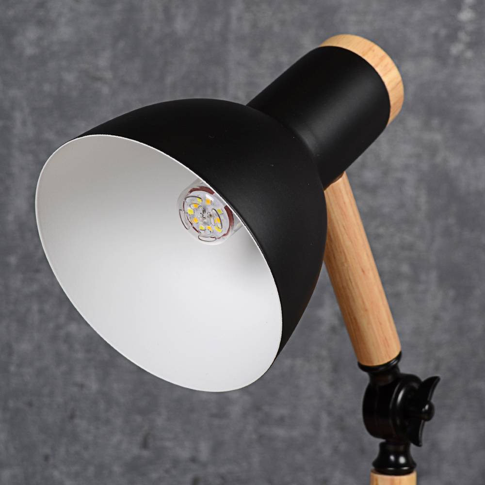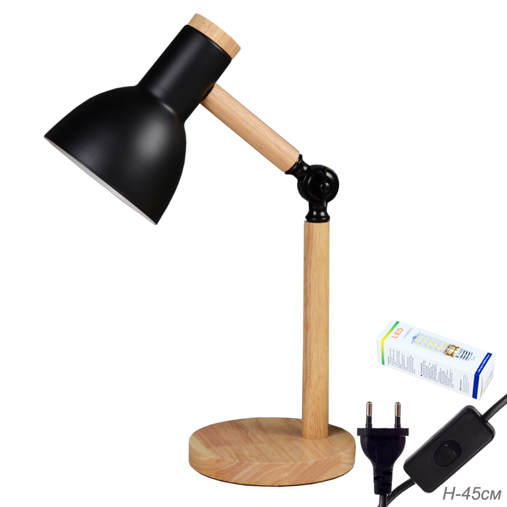 Настольный светильник Чёрный плафон Деревянное основание E27 /Размер: 220мм*450мм С лампой светодиодной 6Вт Тёплый-нейтральный-холодный /уп 10/