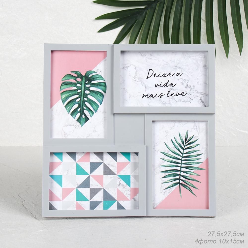 Фоторамка коллаж 27.5х27.5 см серая / K9038-GR /уп 60/ 4 фото 10x15