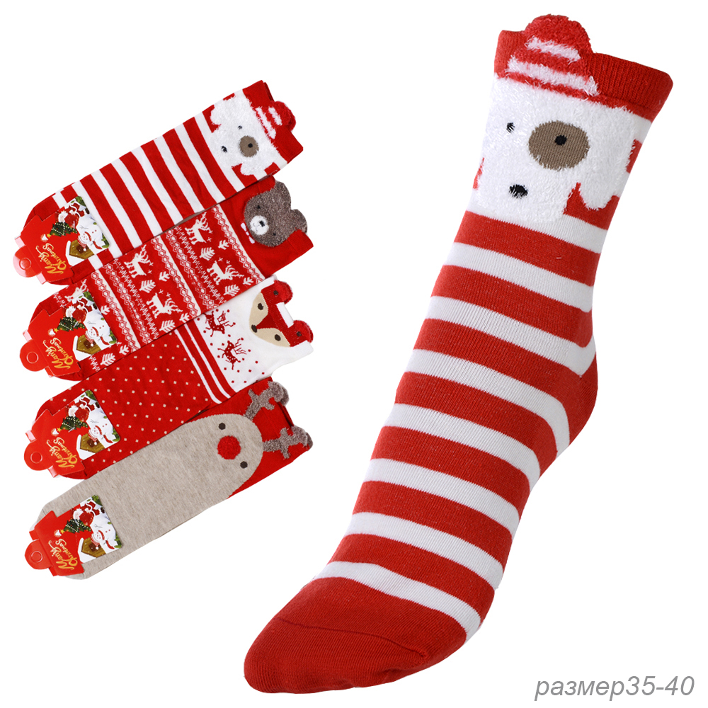 Носки женские р. 35-40 набор 10 штук новогодний / L678 /уп 40/120/